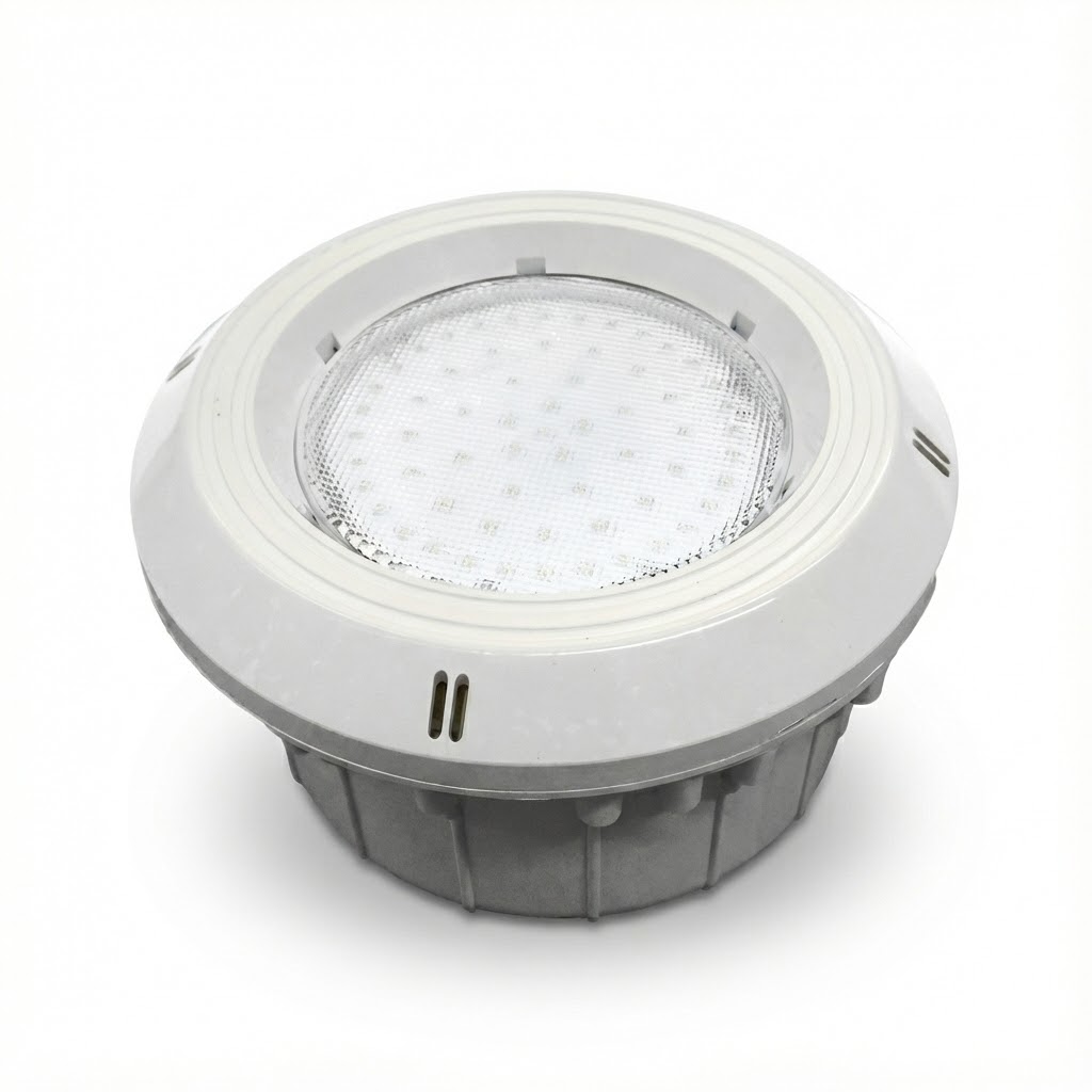 Luminaria sumergible de alta eficiencia diseñada especialmente para piscinas revestidas con liner de PVC. Ofrece una iluminación decorativa, segura y duradera, ideal para uso residencial o comercial. Su instalación incluye componentes de sellado que aseguran compatibilidad con el revestimiento, sin comprometer la impermeabilidad.