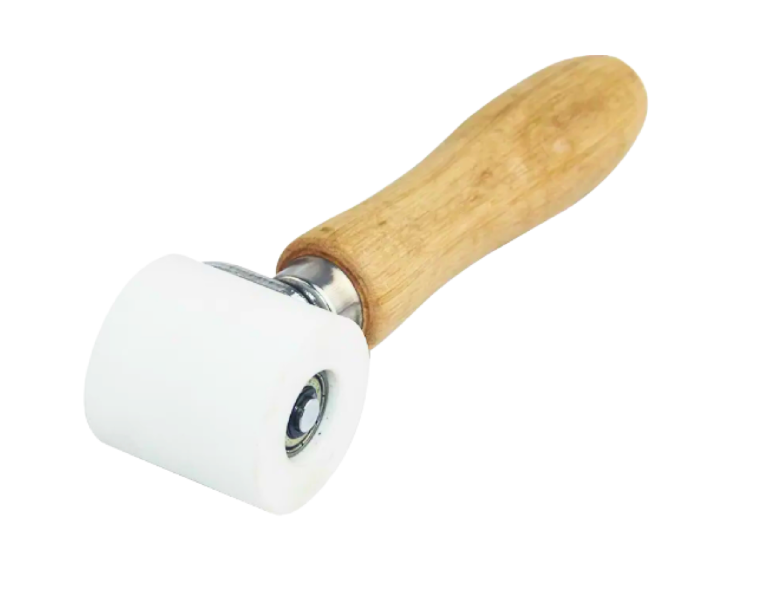 Rodillo de teflón profesional para trabajos de termofusión que permite fijar y consolidar uniones en membranas y láminas plásticas mediante presión uniforme, incluso en aplicaciones de alta temperatura.